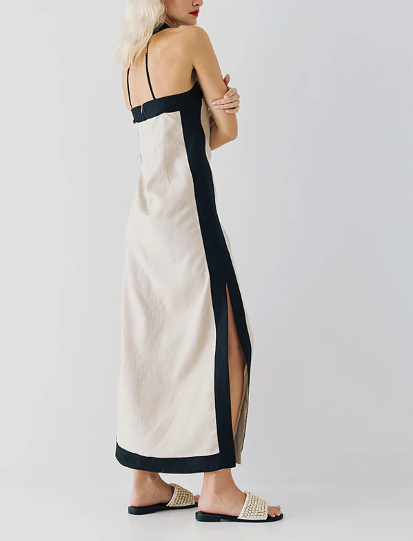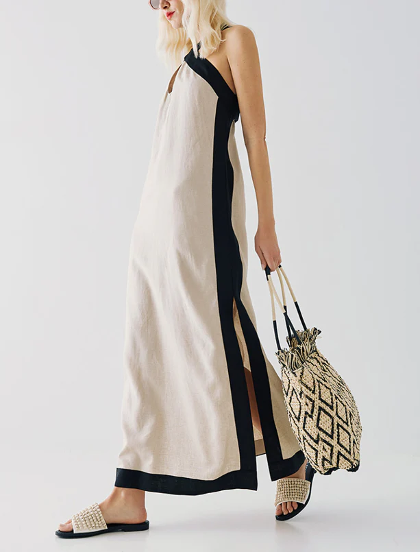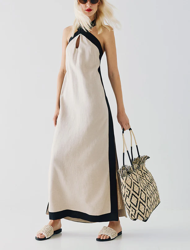 Maxi abito con dettagli bicolore