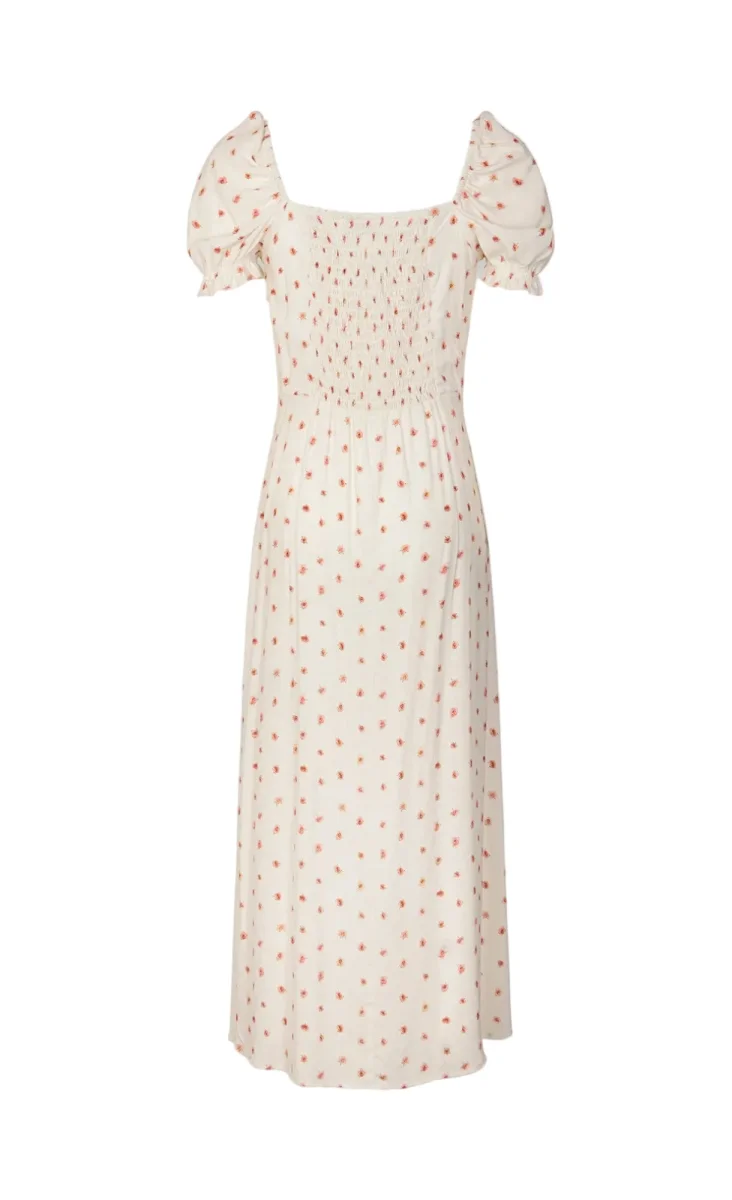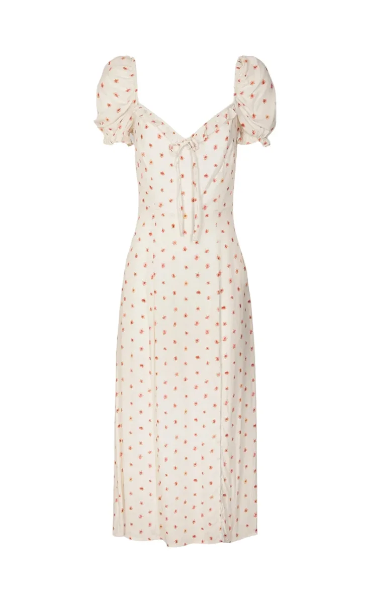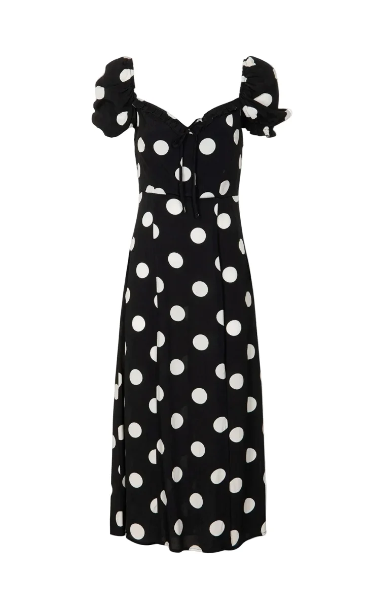 Abito Midi A Mezza Manica Con Volant Sullo Scollo In Crepe