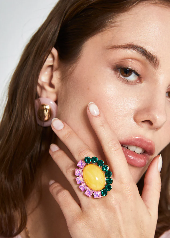 Anello Wish Resina Gialla+ Pietre Verdi• Articolo: EMAN0396