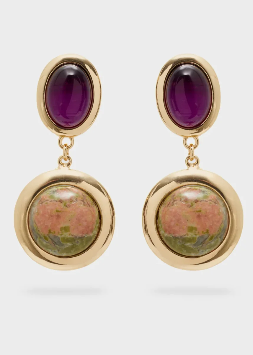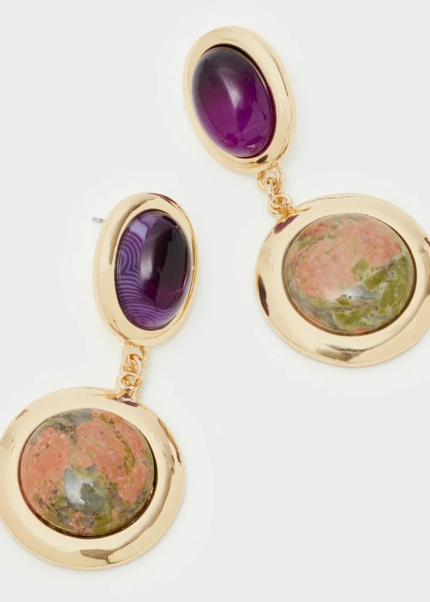 Orecchini Pendenti Oro Pietre Viola/Verdi – EMOR1303